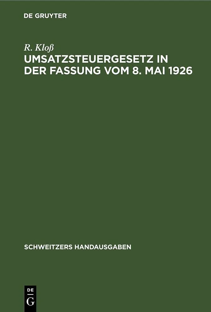 Keine ausführliche Beschreibung für "Umsatzsteuergesetz in der Fassung vom 8. Mai 1926" verfügbar. Inhalt Frontmatter -- Vorwort zur ersten Auflage -- Vorwort zur zweiten Auflage -- Inhaltsverzeichnis -- Abkürzungen -- I. Umsatzsteuergesetz -- II. Du...