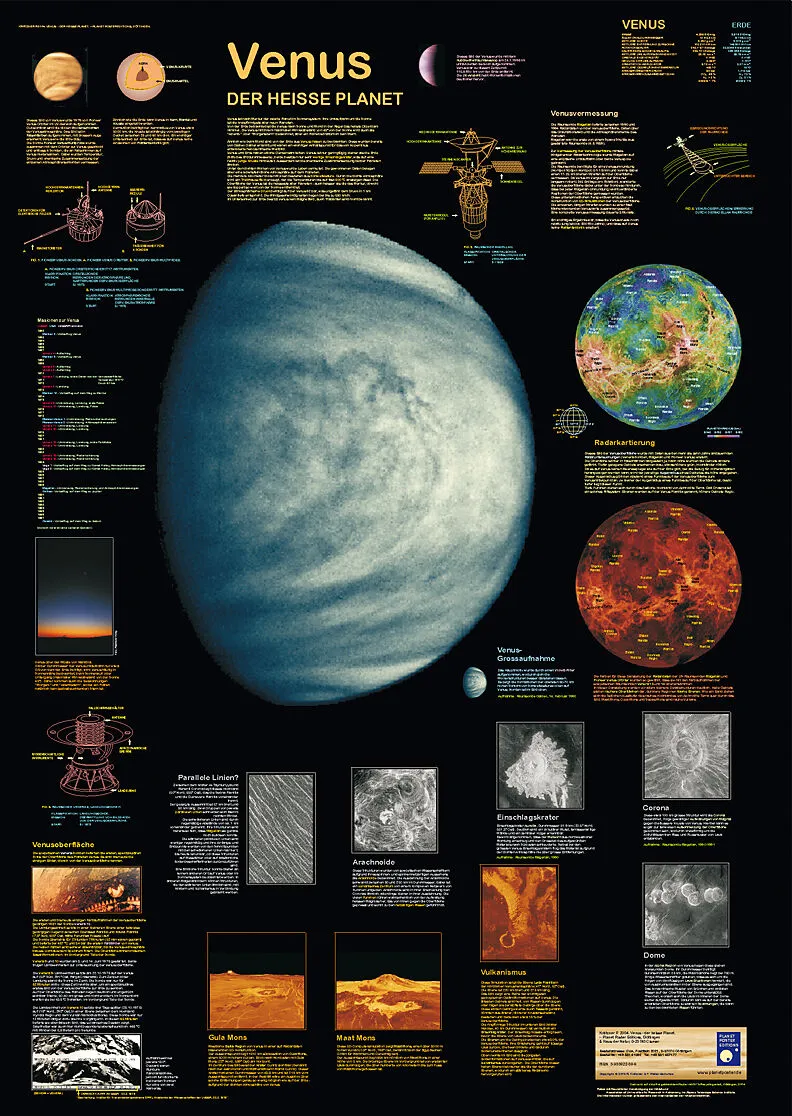 Venus ist nach Merkur der zweite Planet im Sonnensystem. Ihre Umlaufbahn um die Sonne ist die im Vergleich zu anderen Planeten kreisförmigste. Nach Sonne und Mond ist Venus das hellste Objekt am Himmel, historisch oft als "Abendstern" oder "Morgenstern" bezeic...
