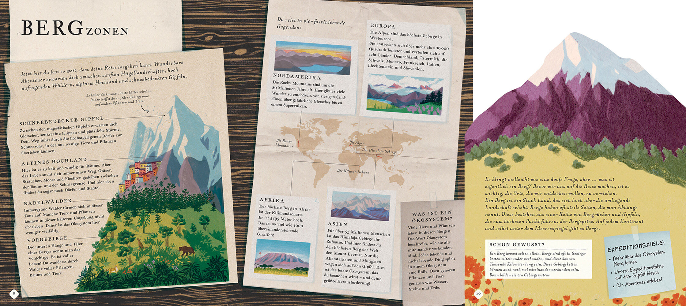 Zeit, in die Wanderschuhe zu schlüpfen! Dieses Sachbuch lockt mutige Kinder auf ein Abenteuer durch vier atemberaubende Bergregionen: von den Höhlen der Alpen, durch eine Schlucht der Rocky Mountains, von den Regenwäldern des Kilimandscharo bis zum höchsten Gi...