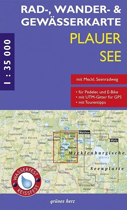 Die Rad-, Wander- und Gewässerkarte Plauer See wurde auf wasser- und reißfestem sowie recyclingfähigem Material gedruckt. Sie stellt die Region im Maßstab 1:35.000 dar und ist 48 x 60 cm groß. Der Plauer See bildet das Zentrum der Karte. Der Kartenausschnitt r...
