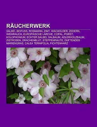 Quelle: Wikipedia. Seiten: 61. Kapitel: Salbei, Beifuß, Rosmarin, Zimt, Wacholder, Zedern, Weihrauch, Europäische Lärche, Copal, Porst, Kolophonium, Echter Salbei, Salbaum, Adlerholzbaum, Zistrosen, Drachenblut, Steppenraute, Duftendes Mariengras, Calea ternif...
