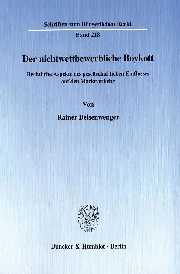 Der außerhalb eines Wettbewerbsverhältnisses veranstaltete Boykott von Unternehmen ist in erster Linie ein Instrument, einer kollektivierten Mehrzahl am Marktgeschehen Beteiligter einen Einfluß auf unternehmerische Entscheidungen zu ermöglichen. Das Ziel der A...