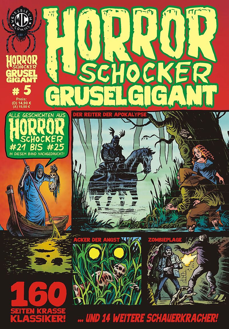 Der mythische Fährmann Charon ist wieder da! Seine Barke ist randvoll mit Geschichten des Grauens, denn mit HORRORSCHOCKER GRUSEL GIGANT # 5 wird der Nachdruck der vergriffenen Hefte von WEISSBLECHs großer Horrorserie fortgesetzt!