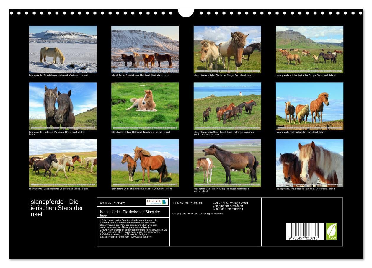 Islandpferde - Die tierischen Stars der Insel (Wandkalender 2026 DIN A3 quer), CALVENDO Monatskalender