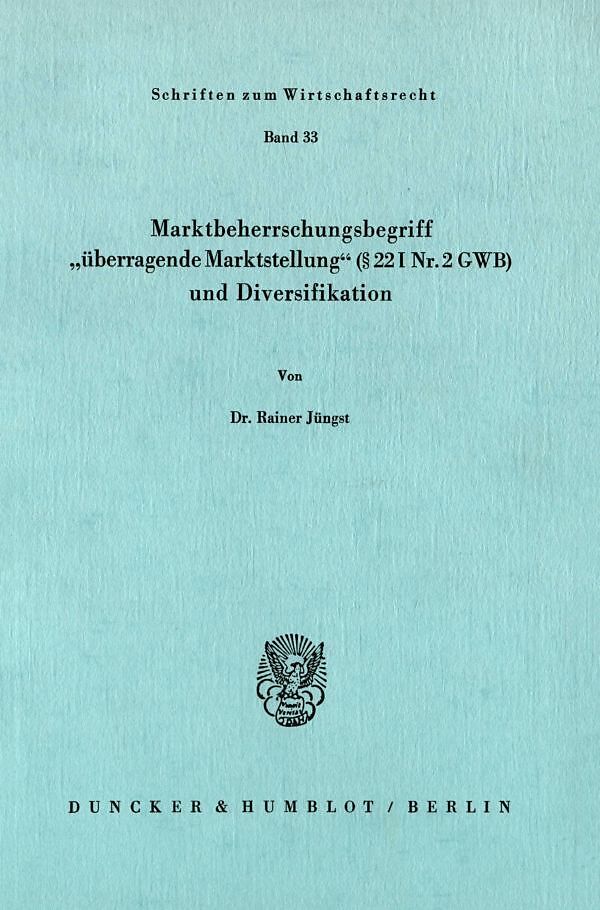 Marktbeherrschungsbegriff "überragende Marktstellung" (§ 22 I Nr. 2 GWB) und Diversifikation.