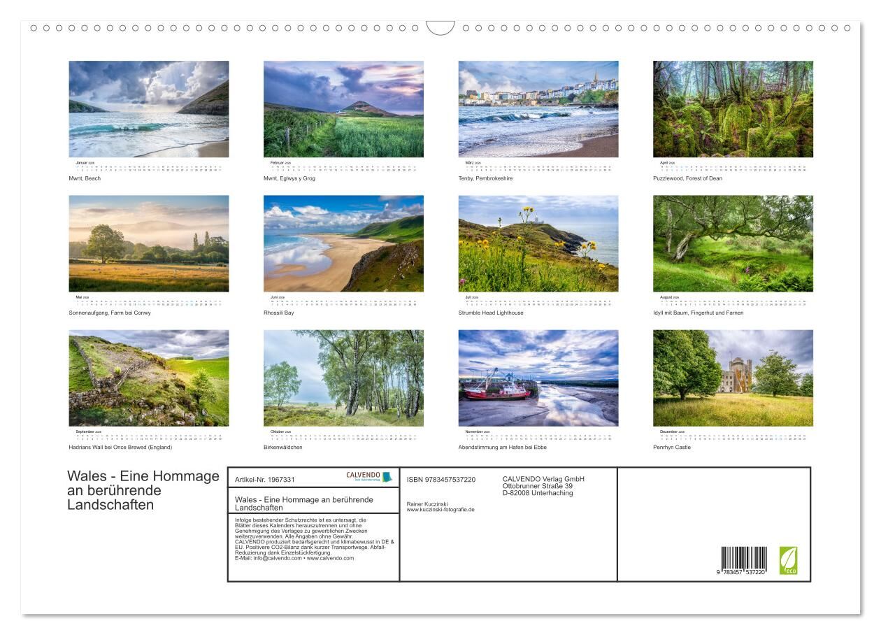 Highlights einer Reise ins Vereinigte Königreich nach Wales mit seinen beeindruckenden Küsten, Landschaften, Orten und stillen Wäldern. Der Kalender enthält neben romantischen Landschaften folgende Motive: Mwnt Beach und Kapelle, Tenby - Pembrokeshire, Puzzlew...