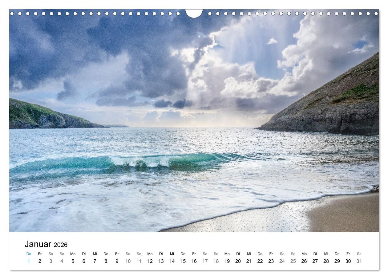 Highlights einer Reise ins Vereinigte Königreich nach Wales mit seinen beeindruckenden Küsten, Landschaften, Orten und stillen Wäldern. Der Kalender enthält neben romantischen Landschaften folgende Motive: Mwnt Beach und Kapelle, Tenby - Pembrokeshire, Puzzlew...