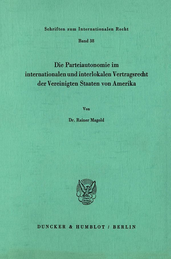 Die Parteiautonomie im internationalen und interlokalen Vertragsrecht der Vereinigten Staaten von Amerika.