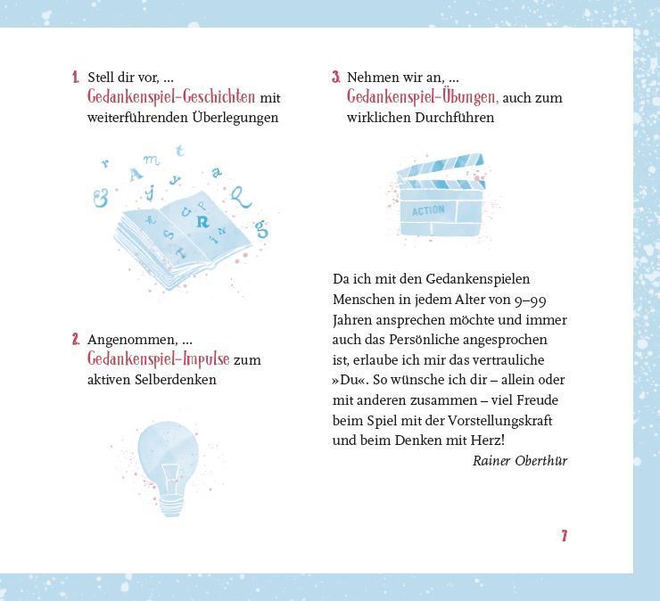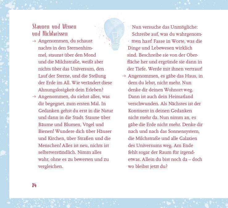 Menschen haben die wunderbare Fähigkeit, zu denken und zu fantasieren, alles zu hinterfragen, um so einen neuen Blick auf das wirkliche Leben zu werfen. Hier setzt dieses Buch an. Spielerisch bietet es Gedanken an, die zum Weiterdenken anregen. Die einfachen G...