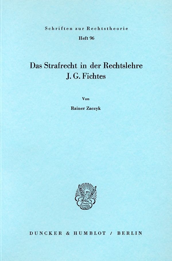 Das Strafrecht in der Rechtslehre J. G. Fichtes.