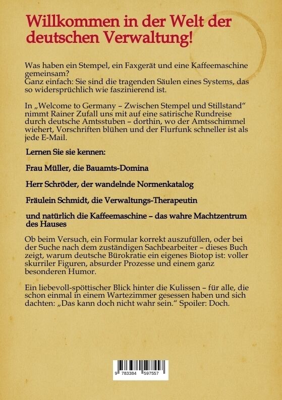 Welcome to Germany Zwischen Stempel und Stillstand Ein satirischer Blick in die Welt der deutschen Ämter. Wartemarken ziehen, Formulare in dreifacher Ausfertigung, und irgendwo ist immer jemand nicht zuständig willkommen im Bürokratiedschungel der Bundesrepubl...