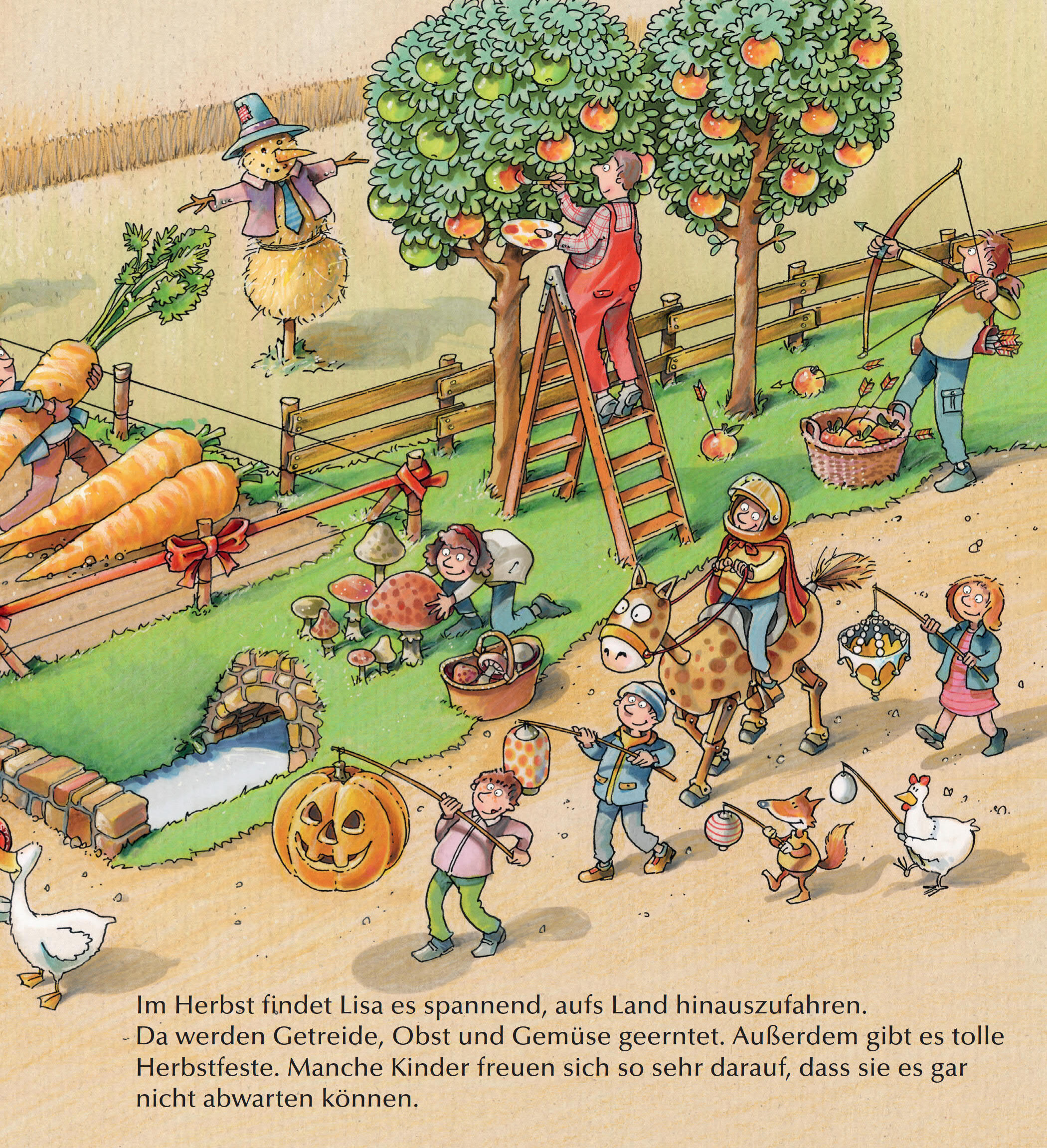 Lisa und ihr Hund Popcorn räumen ihr Zimmer auf. Bei vielen Sachen müssen sie an all die lustigen Dinge denken, die sie das Jahr über erleben. Aber kommen im Frühling die Tierbabys wirklich per Post? Kann man sich im Taucheranzug sonnen? Und lässt sich Schnee...