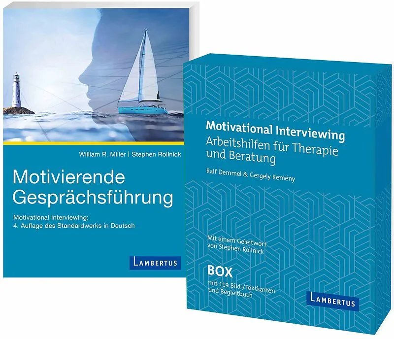 Set bestehend aus Buch dem "Motivierende Gesprächsführung" und der Arbeitshilfen-Kartenbox "Motivational Interviewing" Motivational Interviewing (Miller & Rollnick 2015, 2025) ist ein zugleich direktives und klientenzentriertes Verfahren, das den gleichber...
