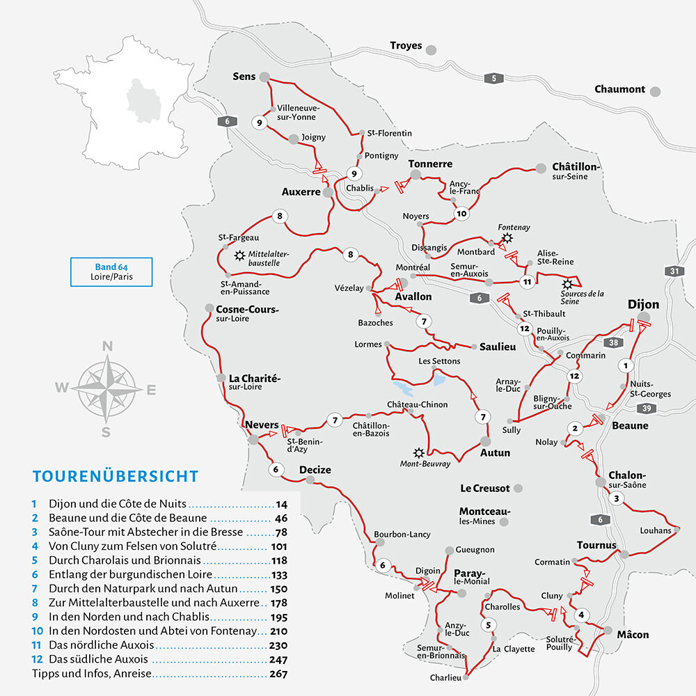 Sie entdecken eine der interessantesten und vielseitigsten Kunstlandschaften Europas und typisches Frankreich, wie wir es lieben. Wir zeigen Ihnen, wie Sie das weite Gebiet mit Freude im Wohnmobil bereisen. Dijon, Beaune, Autun und die anderen Städte mit ihren...
