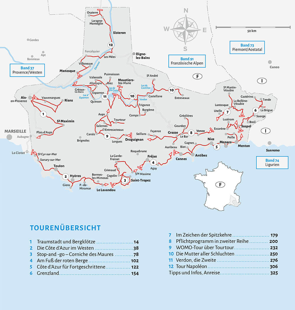 Sie entdecken die östliche Provence und die Côte d'Azur, das Hinterland von Nizza, die Verdonschlucht sowie die Stauseen. Wir zeigen Ihnen, wie Sie die unterschiedlichen Regionen mit Freude im Wohnmobil bereisen. Aix-en-Provence, Nizza, Monaco, Grasse und die ...