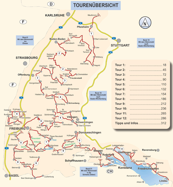 TOURENKARTEN Folgen Sie uns auf 12 sorgfältig recherchierten Touren durch den Schwarzwald und über die Baar an den Bodensee. Orientieren Sie sich mit Übersichtskarten zu allen Stell- und Campingplätzen, Ver- und Entsorgungsstationen und den empfohlenen Reisero...