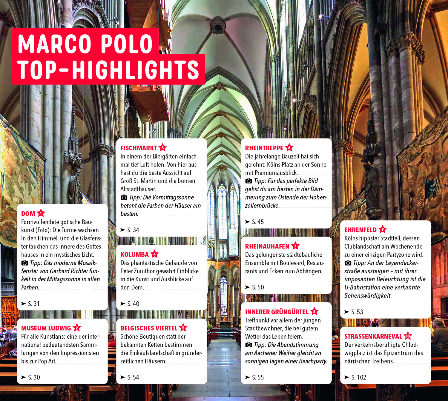 Mehr als nur der Dom: Mit dem MARCO POLO Reiseführer Köln kennenlernen Der Dom, der Rhein und Karneval so könnte man Köln zusammenfassen. Aber an der Quelle von Kölsch und Minimal Techno gibt es noch viel mehr zu entdecken. Am besten zu Fuß oder am Fahrrad, d...