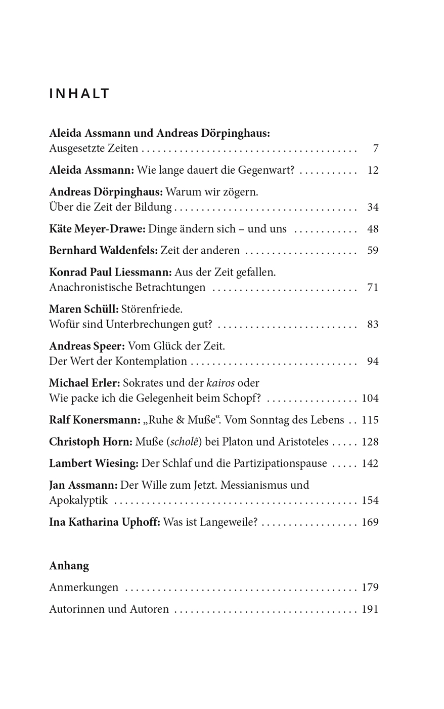 In 13 prägnanten Essays reflektiert ein hochkarätiges Autorenteam über Zeitstrukturen: Muße, den rechten Augenblick, Langeweile, das Zögern, Ruhe und Unruhe ... Die Kulturgeschichte der Zeit ist reicher an Gestalt, als es den ersten Anschein hat. Aleida Assman...