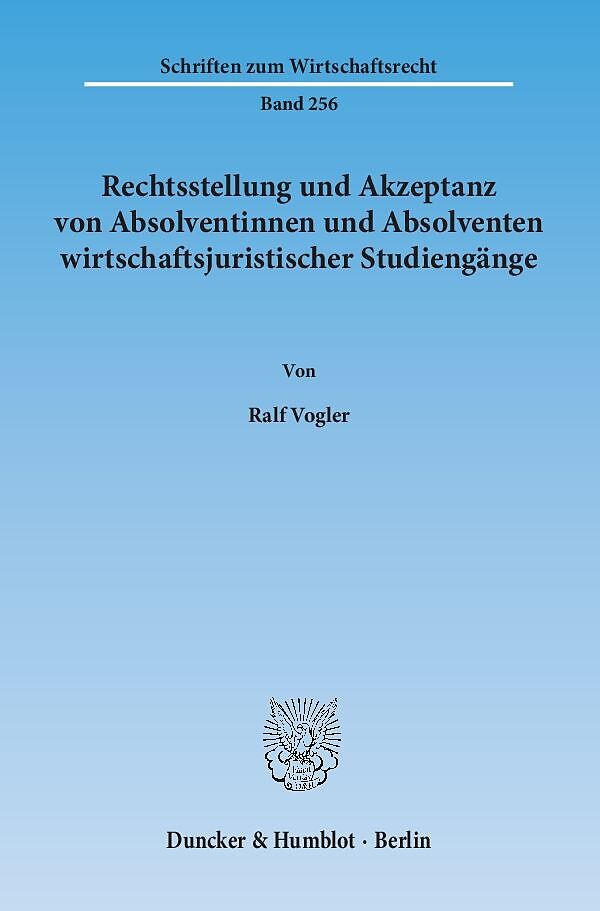 Rechtsstellung und Akzeptanz von Absolventinnen und Absolventen wirtschaftsjuristischer Studiengänge.