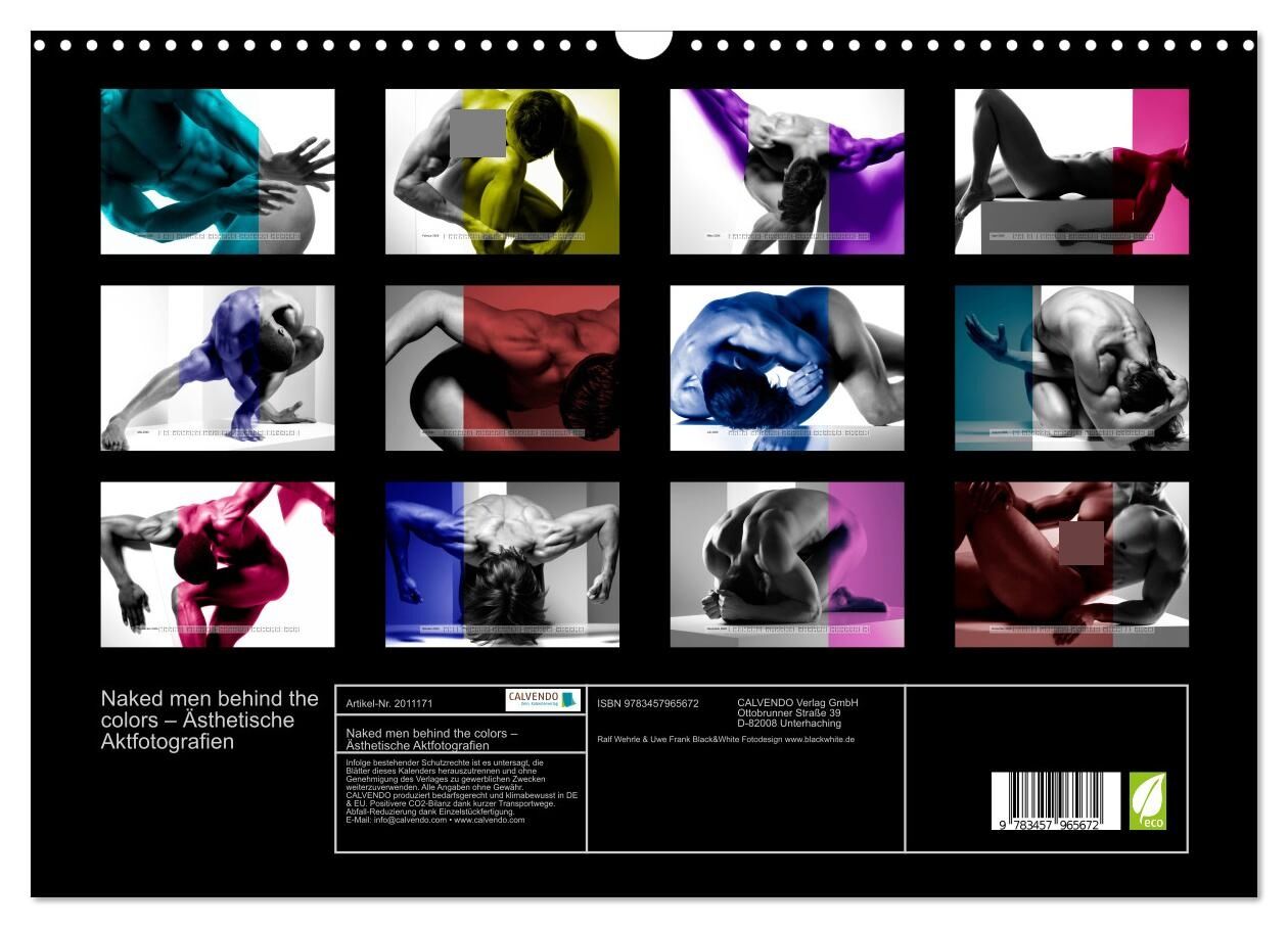 Naked men behind the colors Ästhetische Aktfotografien (Wandkalender 2026 DIN A3 quer), CALVENDO Monatskalender