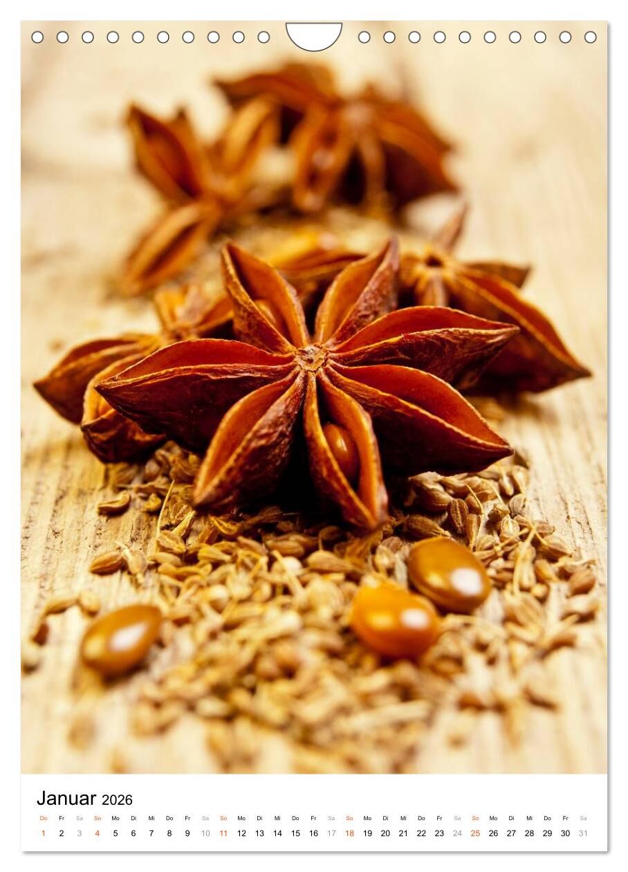 Kräuter und Gewürze verleihen unseren Speisen ein schmackhaftes Aroma. Sie geben den Gerichten ihre ganz persönliche Note. In unserem Kalender finden Sie 12 wundervolle und farbintensive Motive dieser Naturprodukte.