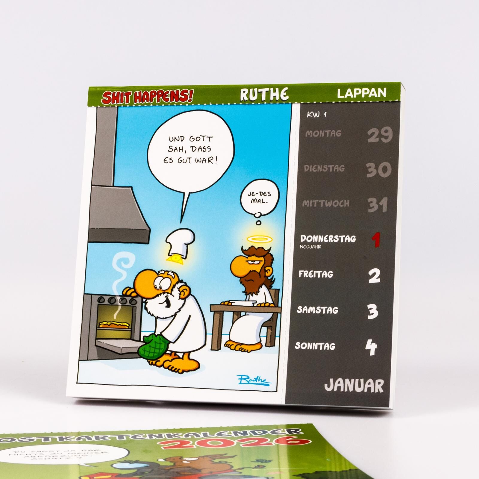 Jede Woche ein Shit Happens!-Cartoon! Mit diesem Postkartenkalender kann 2026 kommen. Mit diesem Cartoon-Kalender für 2026 kann man sich gegen jedes Unheil wappnen und auch seine Mitmenschen mit Humor versorgen, weil hier die sagenhaften Shit happens!-Cartoon...