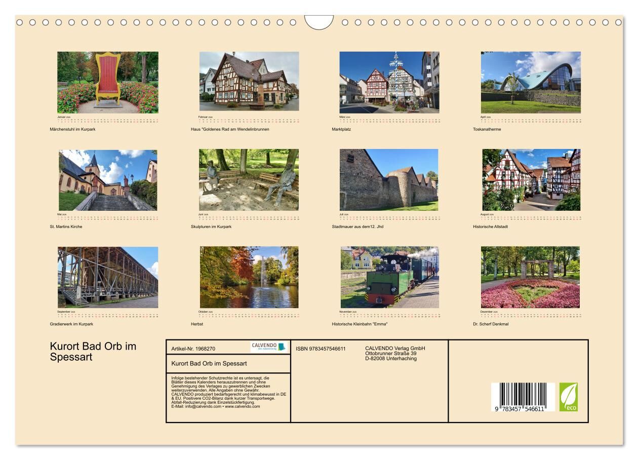 Kurort Bad Orb im Spessart (Wandkalender 2026 DIN A3 quer), CALVENDO Monatskalender