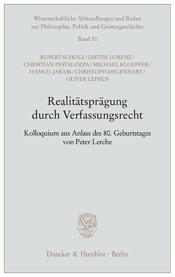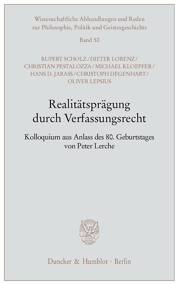 Am 12. Januar 2008 feierte Prof. Dr. Dr. h.c. Peter Lerche, emeritierter Ordinarius für Öffentliches Recht an der Universität München, seinen 80. Geburtstag. Aus diesem Anlass veranstalteten seine habilitierten Schüler ein Kolloquium in der Carl Friedrich von ...