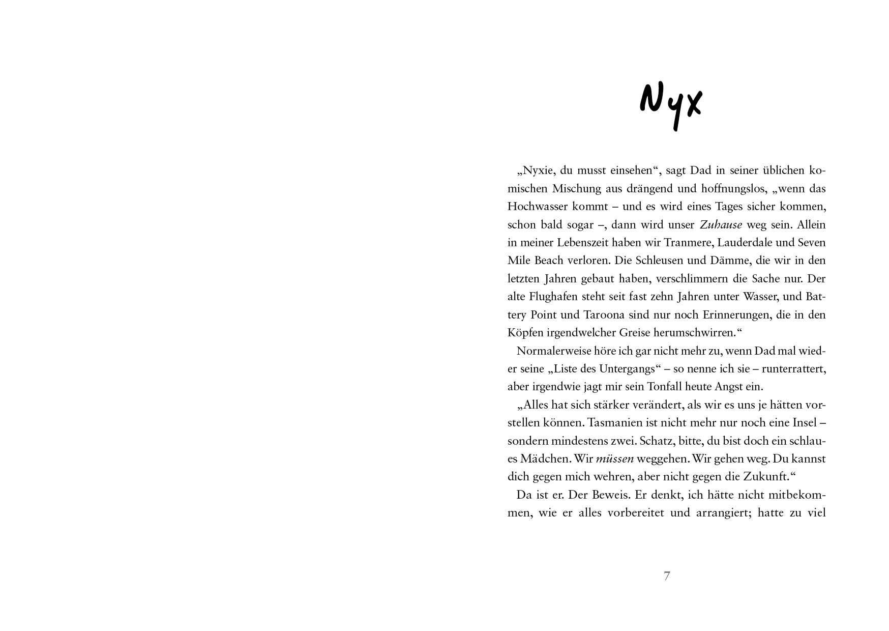 Nyx lebt in Tasmanien im Jahr 2093, wo die Ozeane sauer geworden sind und das ganze Jahr über Buschfeuer herrschen. Um ihre Frustration über die Welt auszudrücken, hinterlässt sie eine wütende und verzweifelte Nachricht an ihrem Lieblingsbaum. Siebzig Jahre i...