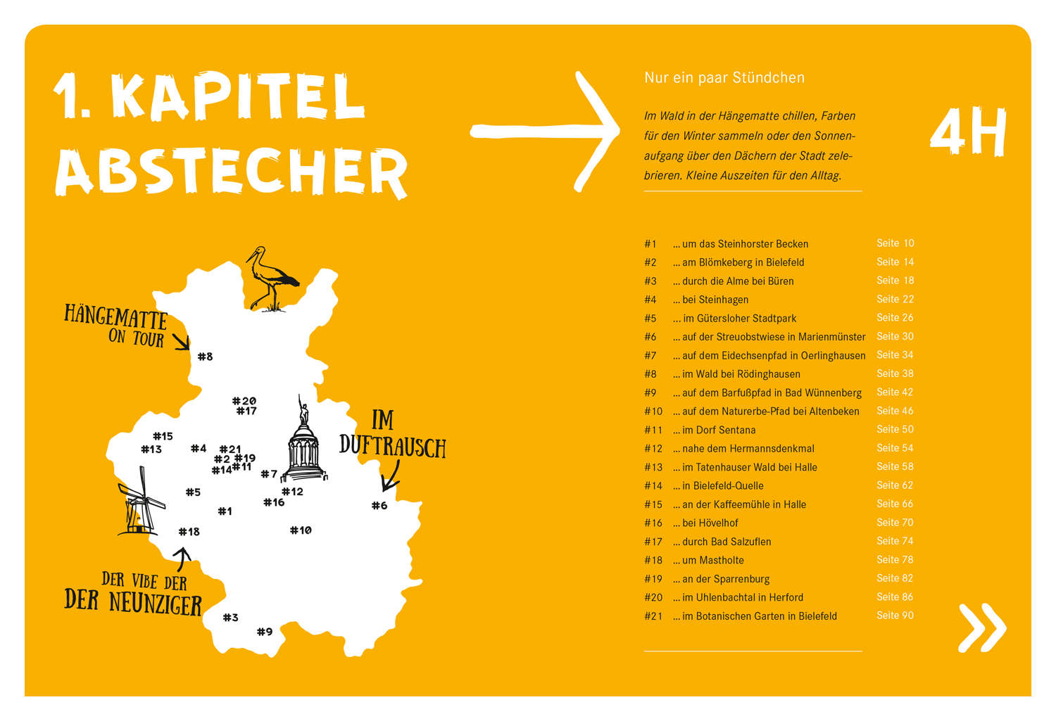 Draußen unterwegs zwischen Bielefeld, Paderborn und Gütersloh Abstecher. Ausflüge. Miniurlaube. Ob wandern, radeln, paddeln oder in aller Ruhe die Natur genießen: 52 kleine und große Eskapaden machen Lust, die schönsten Ecken in Ostwestfalen-Lippe zu entdecke...