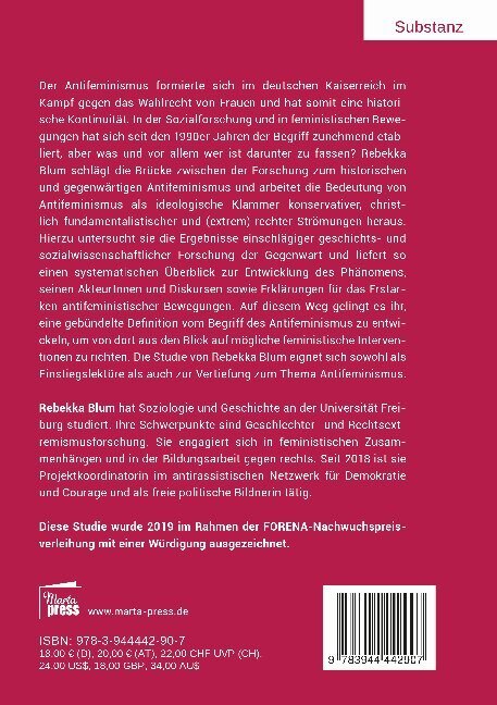 Der Antifeminismus formierte sich im deutschen Kaiserreich im Kampf gegen das Wahlrecht von Frauen und hat somit eine historische Kontinuität. In der Sozialforschung und in feministischen Bewegungen hat sich seit den 1990er Jahren der Begriff zunehmend etablie...