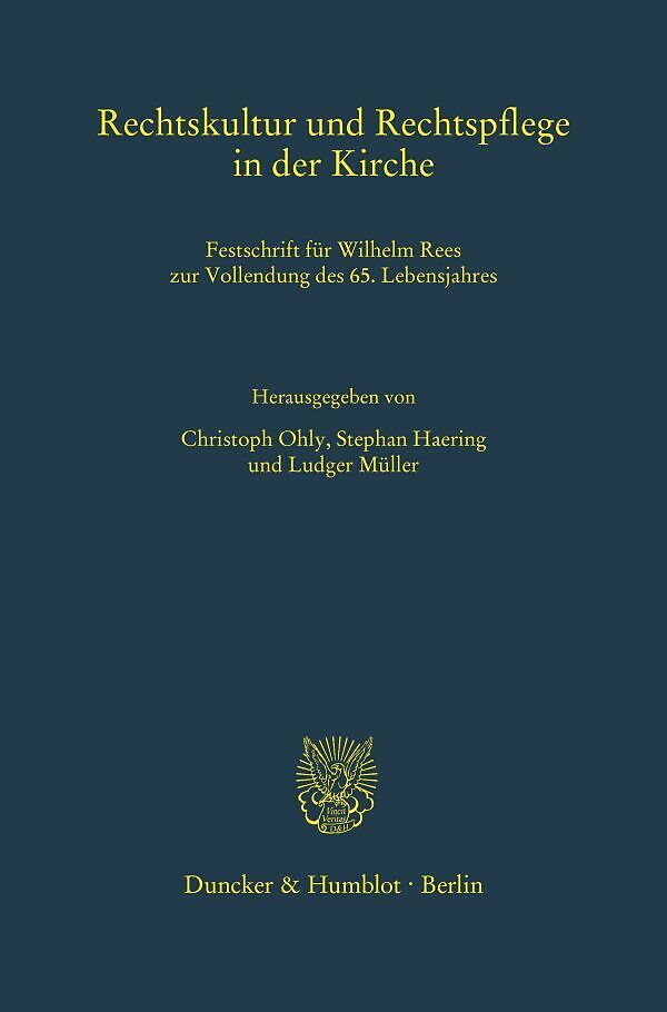 »Legal Culture and Administration of Justice in the Church« This festschrift entitled »Rechtskultur und Rechtspflege in der Kirche« (»Legal Culture and Administration of Justice in the Church«) and dedicated to Wilhelm Rees, Professor of Canon Law at the University of Innsbruck, on the occasion of his 65th birthday reflects the central concerns of Rees's acandemic oeuvre. In his critical analysis of the eccelsiastical legal order and in his comments and observations on ecclesiastical legislation he keeps advocating the implementation of solutions that are in accordance with the ideal of justice. The contributions assembled in this volume offer a critical engagement with Rees's work in central areas of common law, such as constitutional law, criminal and procedural law as well as comparative religious law.