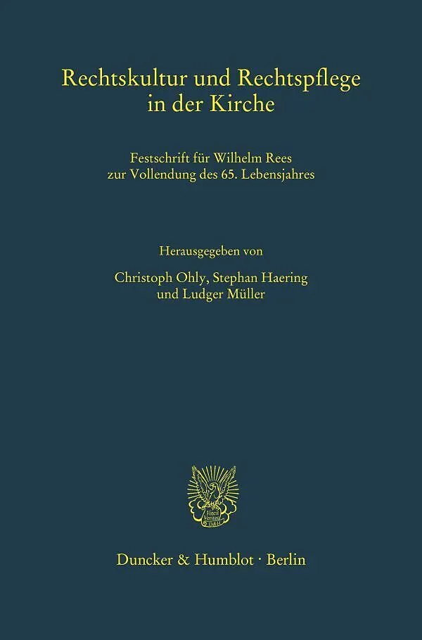 »Legal Culture and Administration of Justice in the Church« This festschrift entitled »Rechtskultur und Rechtspflege in der Kirche« (»Legal Culture and Administration of Justice in the Church«) and dedicated to Wilhelm Rees, Professor of Canon Law at the University of Innsbruck, on the occasion of his 65th birthday reflects the central concerns of Rees's acandemic oeuvre. In his critical analysis of the eccelsiastical legal order and in his comments and observations on ecclesiastical legislation he keeps advocating the implementation of solutions that are in accordance with the ideal of justice. The contributions assembled in this volume offer a critical engagement with Rees's work in central areas of common law, such as constitutional law, criminal and procedural law as well as comparative religious law.