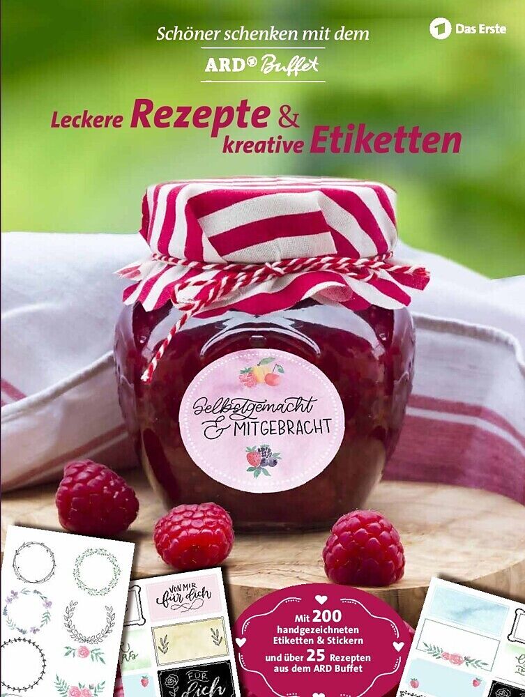 200 handgezeichnete Etiketten und Sticker passend für Gläser und Flaschen in verschiedenen Formen und Größen - Vom Einmachglas zum Geschenkhighlight: besondere Geschenkinspirationen von ARD Buffet Experten - schnelle Rezepte für Konfitüren, Pesto, Sirup, Geb...