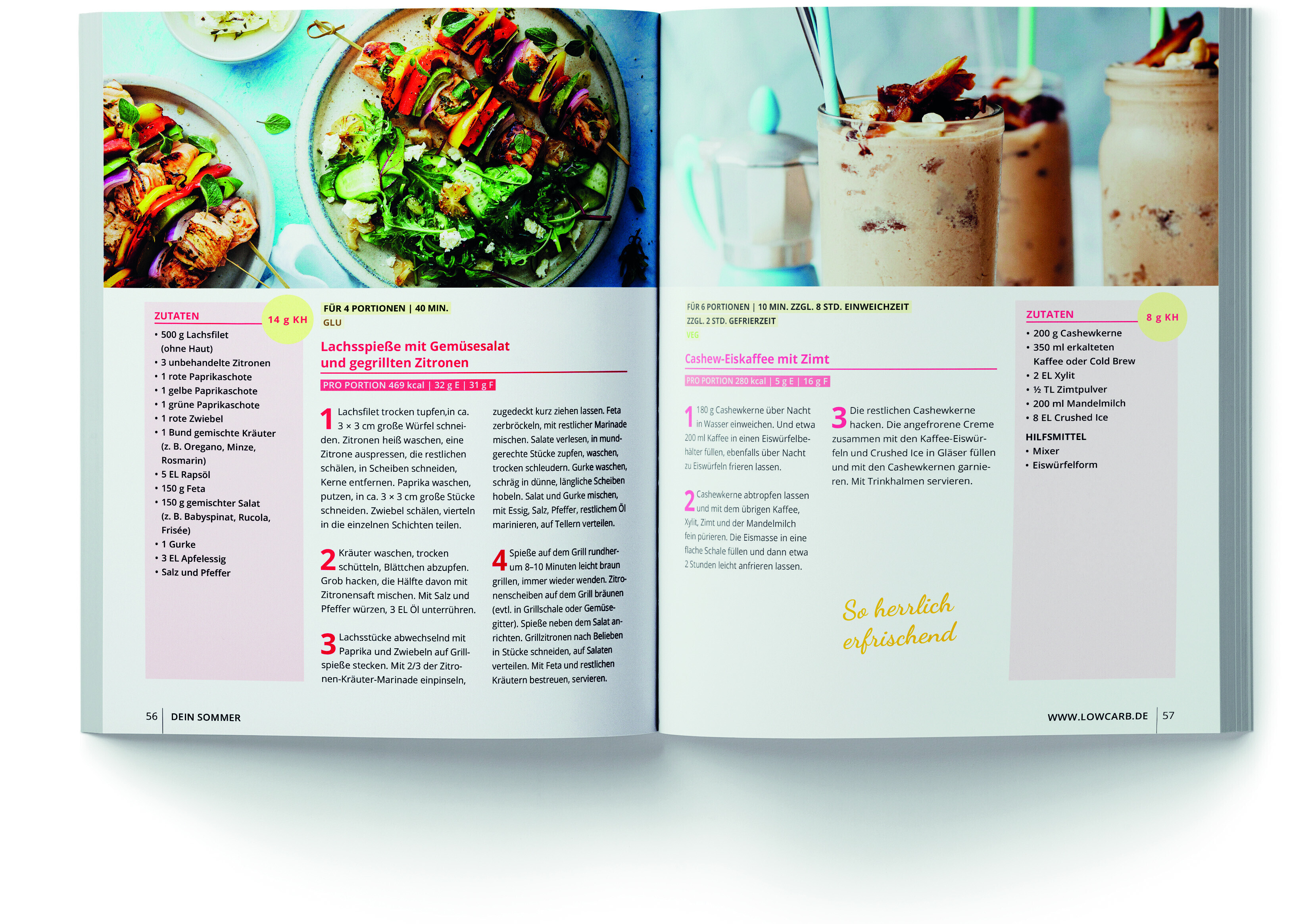 Mit 100 einfachen und schnellen Low Carb-Gerichten unbeschwert durch den Sommer: Leckeres zum Grillen, selbstgemachtes Eis, erfrischende Drinks, gesunde Salate und Bowls, Leichtes zum Mittag, Vegetarisches, feine Obstkuchen, Energie-Snacks und köstliche Ideen...