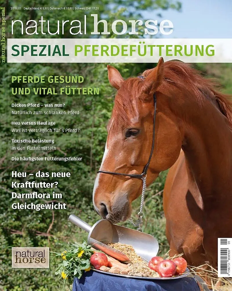 Pferdefütterung- Die neue Sonderpublikationaus der Natural Horse Redaktion enthält auf 96 Seiten und festem Klappenumschlag Tipps für eine gesunde Pferdefütterung. Dieses Thema ist in der heutigen Zeit besonders wichtig, da unsere Pferde mit Leckerlies und Zus...