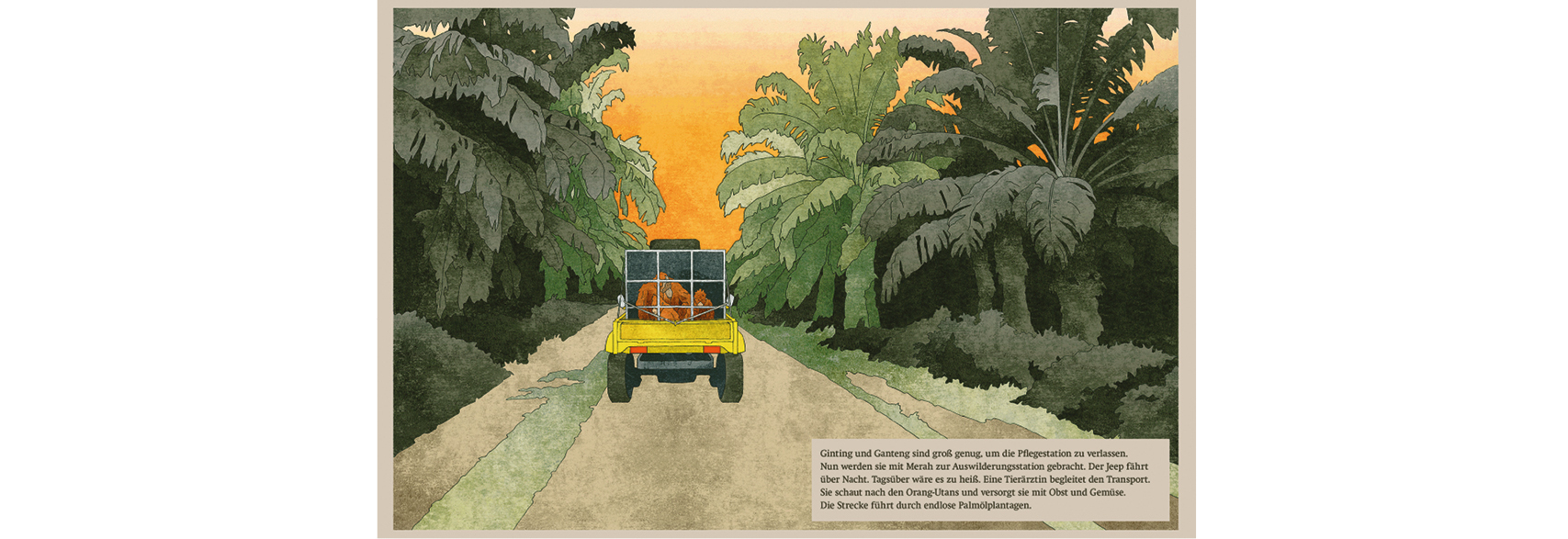 Die Orang-Utan-Zwillinge Ginting und Ganteng wachsen in einer Pflegestation auf. Ihre Mutter hat noch im Regenwald gelebt, aber Brandrodungen haben sie vertrieben. Auf den zerstörten Flächen werden Palmölplantagen angebaut. Die Pflegestation ist ein Glück, do...