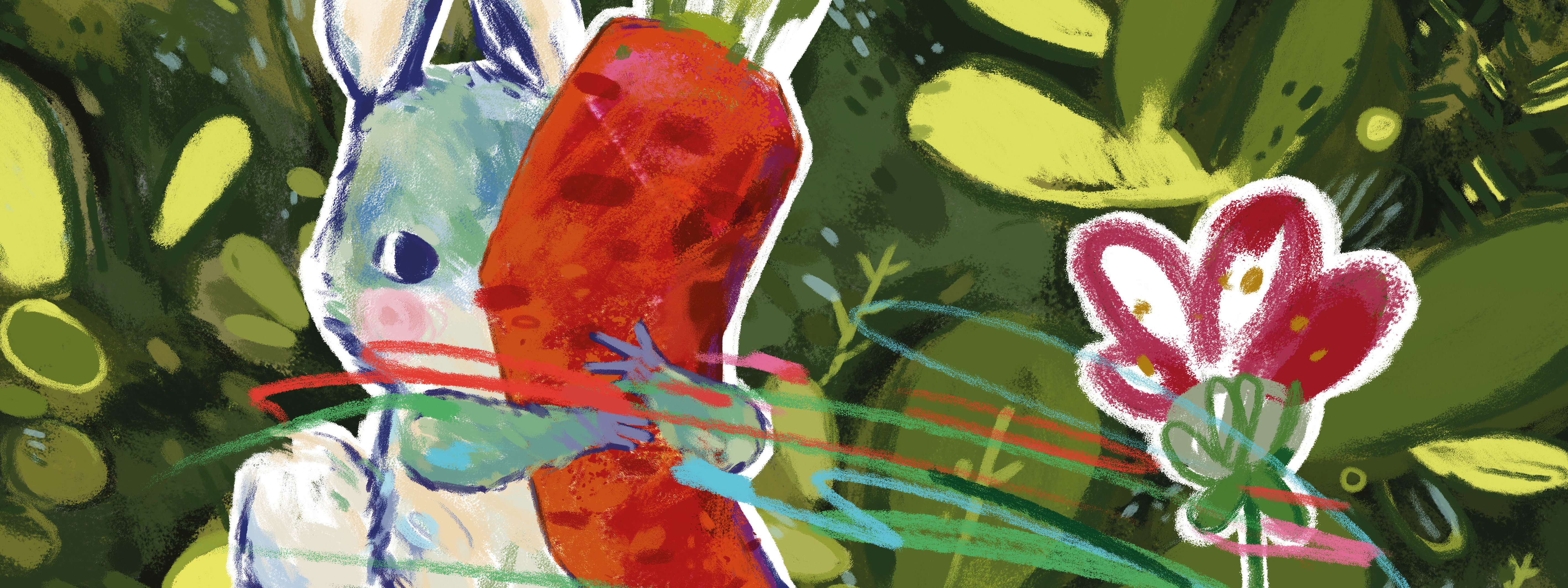 «Das ist vielleicht ein Riesenschreck, denn Hases Möhre, die ist weg! Er hatte sie vorhin dabei, doch wegen seiner Träumerei passiert es oft, dass er vergisst wo dies und das gerade ist. Das ärgert ihn natürlich immer, nur diesmal nervt es ihn noch schlimmer, ...