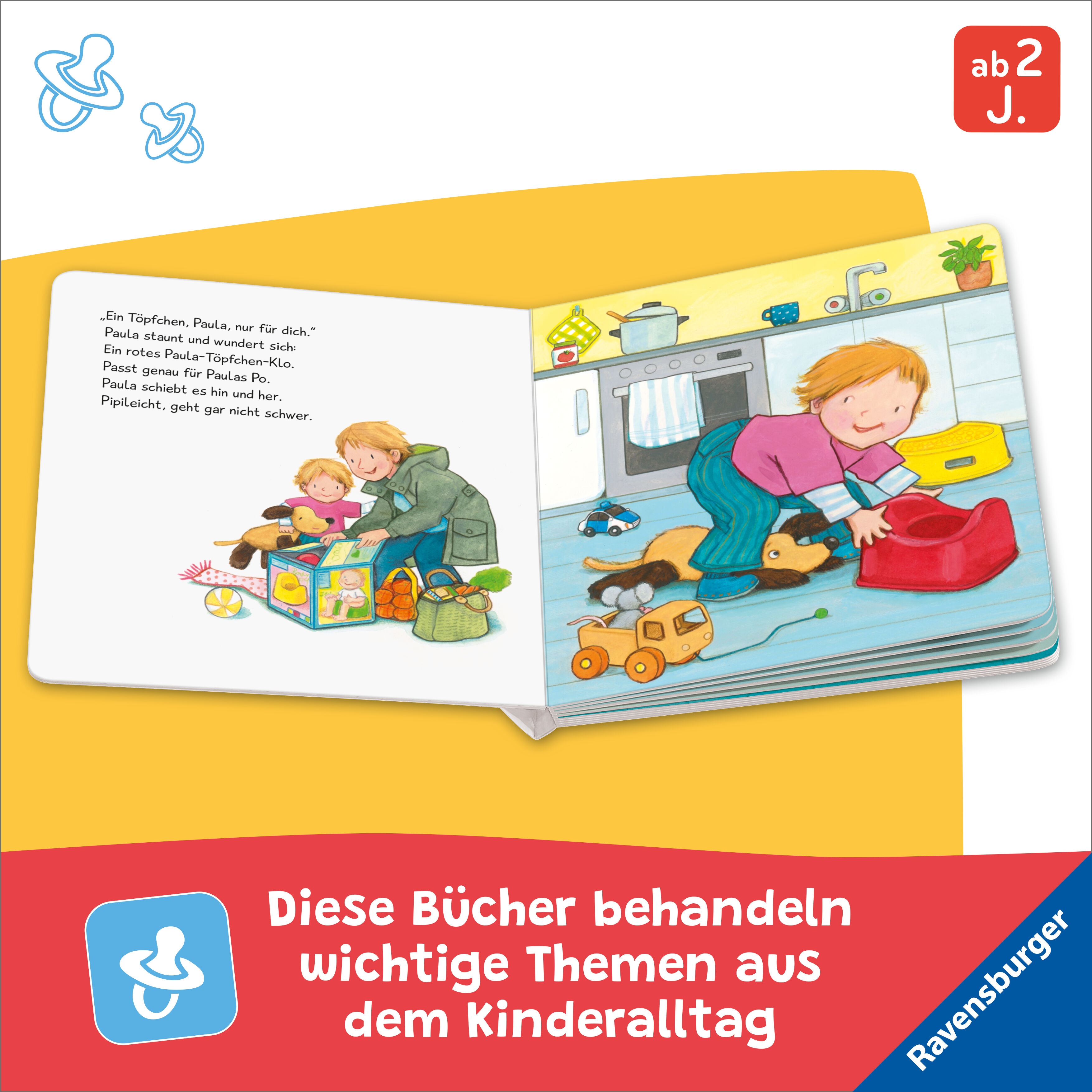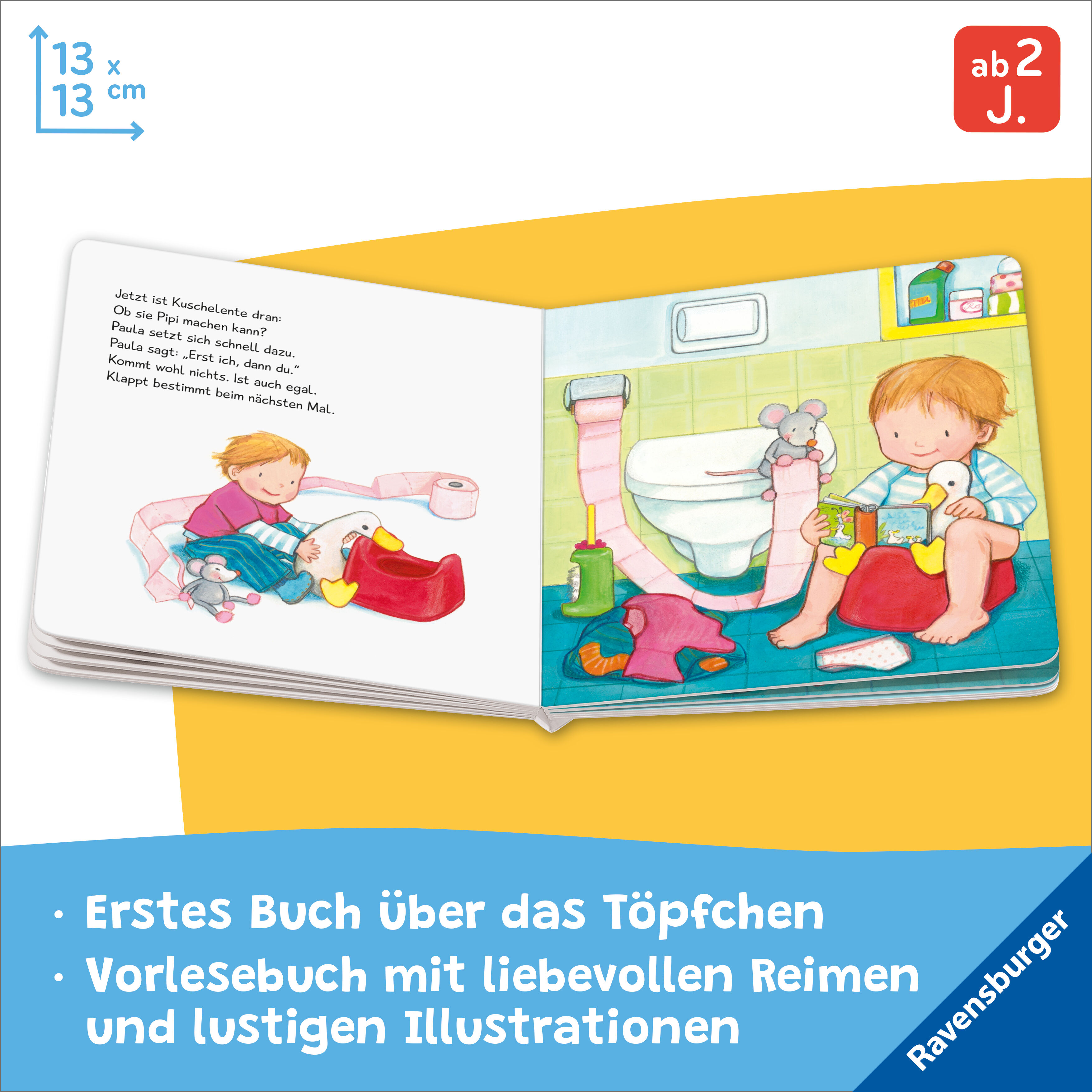 Liebevolle Vorlesegeschichte über das Trockenwerden Paula hat ein Töpfchen bekommen. Sie setzt sich gleich mal drauf! Nach ihr dürfen alle Kuscheltiere das Töpfchen ausprobieren: Maus, Elefant, Ente und Teddybär. Aber hoppla, die Maus ist zu klein, der Elefant...