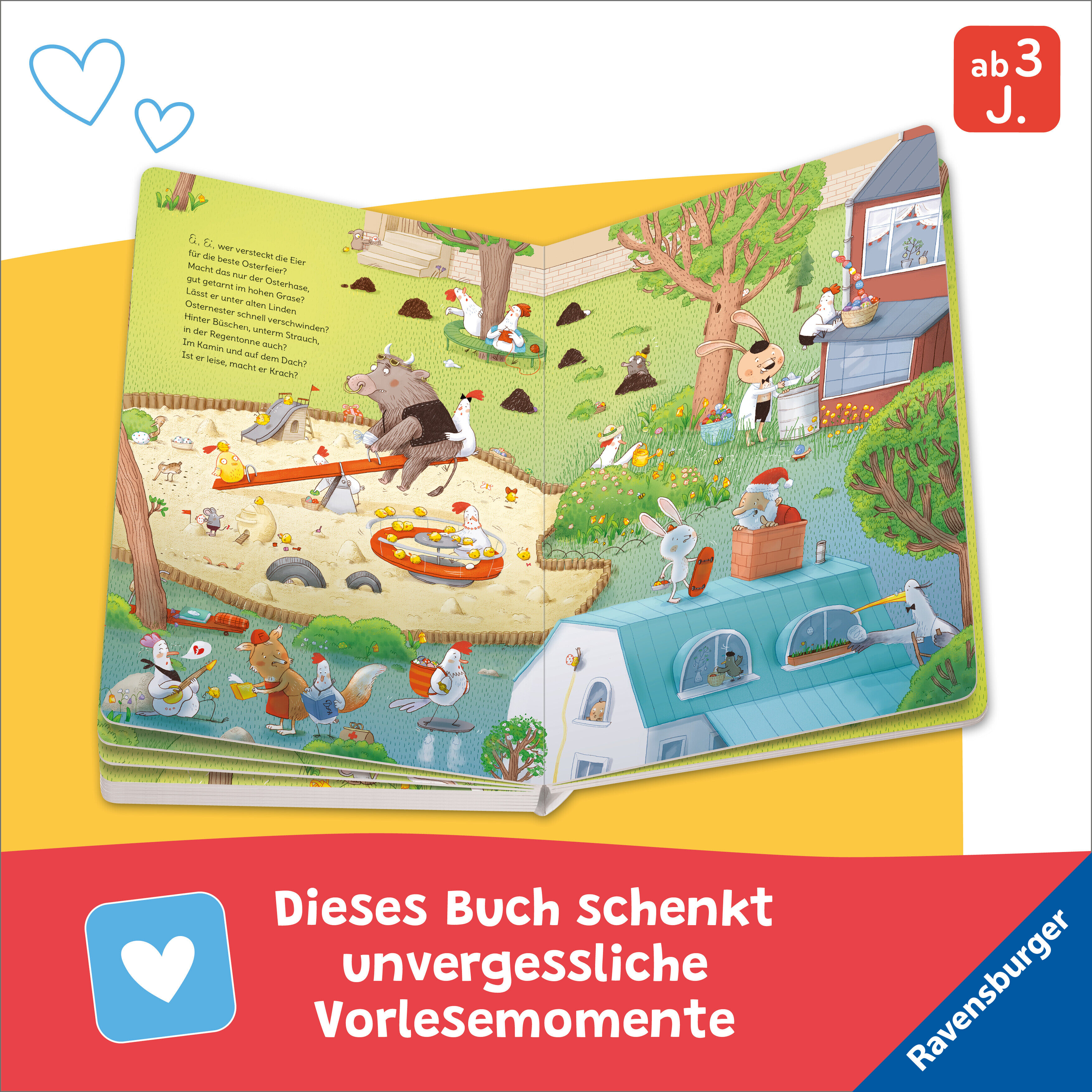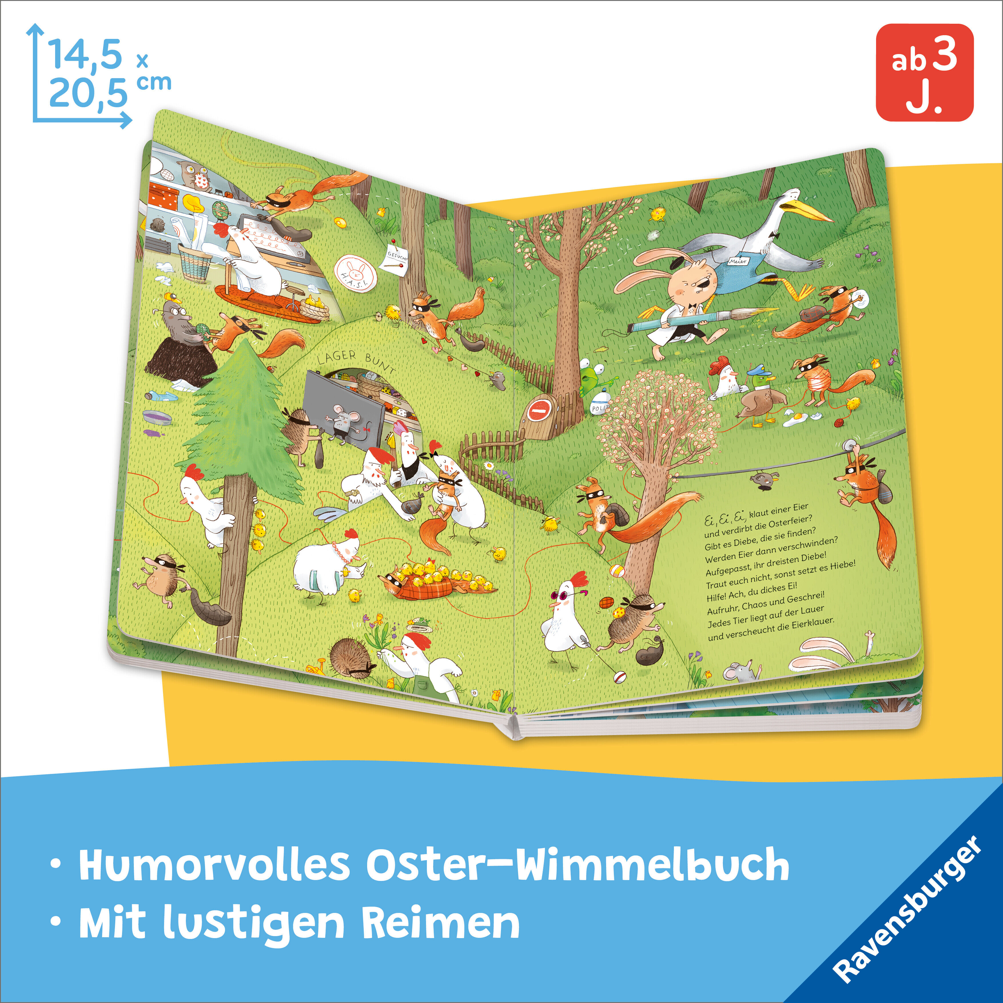 Lustiges Oster-Wimmelbuch für Groß und Klein Ostern steht vor der Tür! Für den Osterhasen gibt es nun viel zu tun. Die Eier müssen eingesammelt, bemalt, versteckt und vor den frechen Eierdieben beschützt werden. Zum Glück hat der Osterhase dabei viele große un...