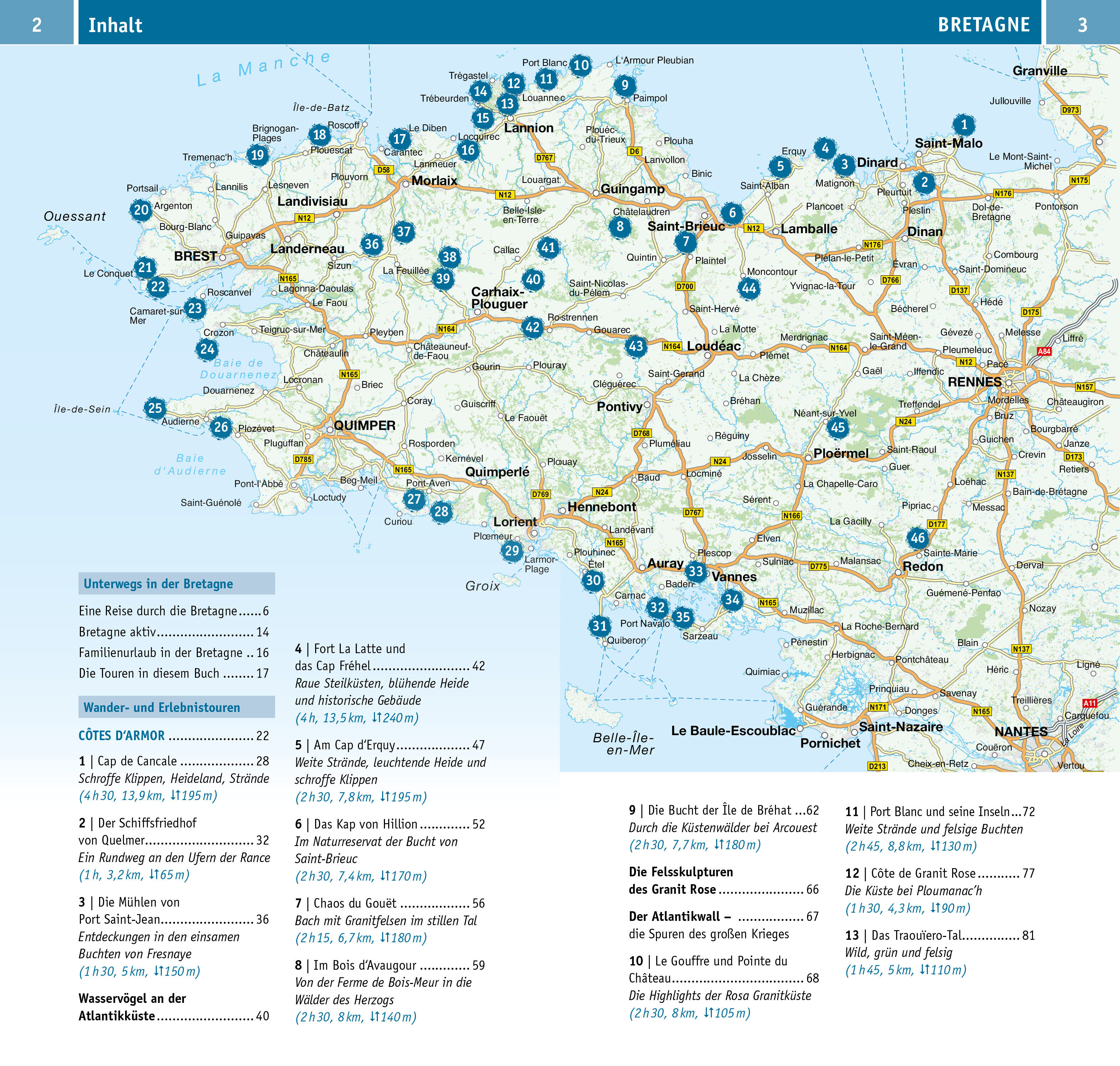 In der Bretagne, dem »Land am Meer«, ist die Küste niemals weit entfernt. Faszinierende Felsformationen und schroffe Klippen, raue Atlantikbrandung, karibisch anmutende Strände und weite, bei Ebbe trockenfallende Buchten die Küstenlandschaft ist abwechslungsr...