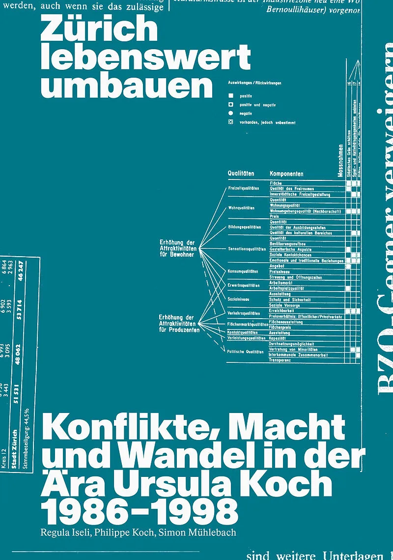 Die 1980er-Jahre waren eine Zeit des Umbruchs, die sich unter anderem mit den Jugendunruhen und mit Protesten gegen die autogerechte Stadt manifestierte. Vor diesem Hintergrund wurde Ursula Koch 1986 für die SP in die Zürcher Stadtregierung gewählt. Sie erkann...