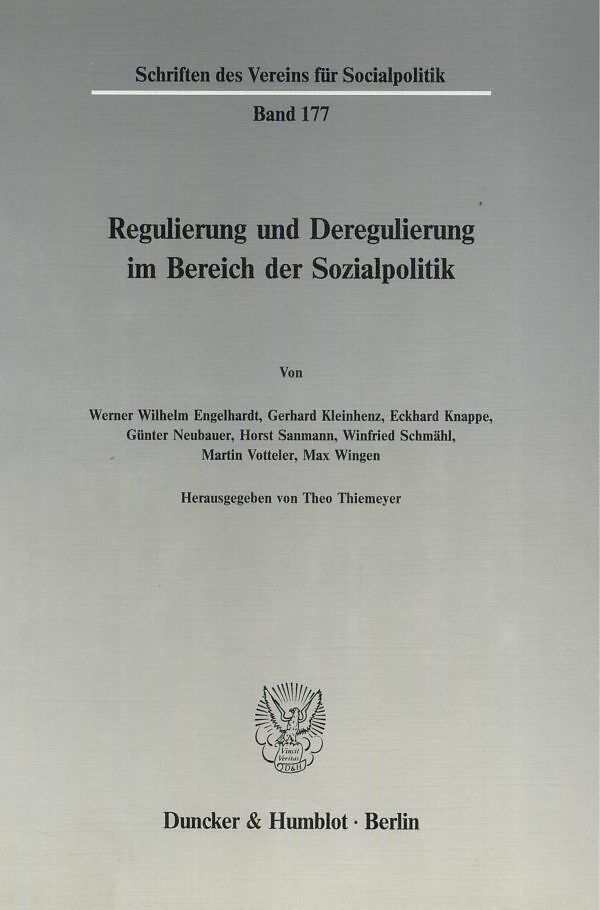 Inhalt Inhalt: G. Neubauer, Regulierung und Deregulierung im Gesundheitswesen der Bundesrepublik Deutschland - H. Sanmann, Regulierung und Deregulierung im Rahmen der Arbeitsmarktpolitik für Schwerbehinderte - W. Schmähl, Übergang zu Staatsbürger-Grundrenten -...