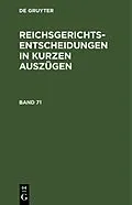 Reichsgerichts-Entscheidungen in kurzen Auszügen / Strafsachen. Band 71