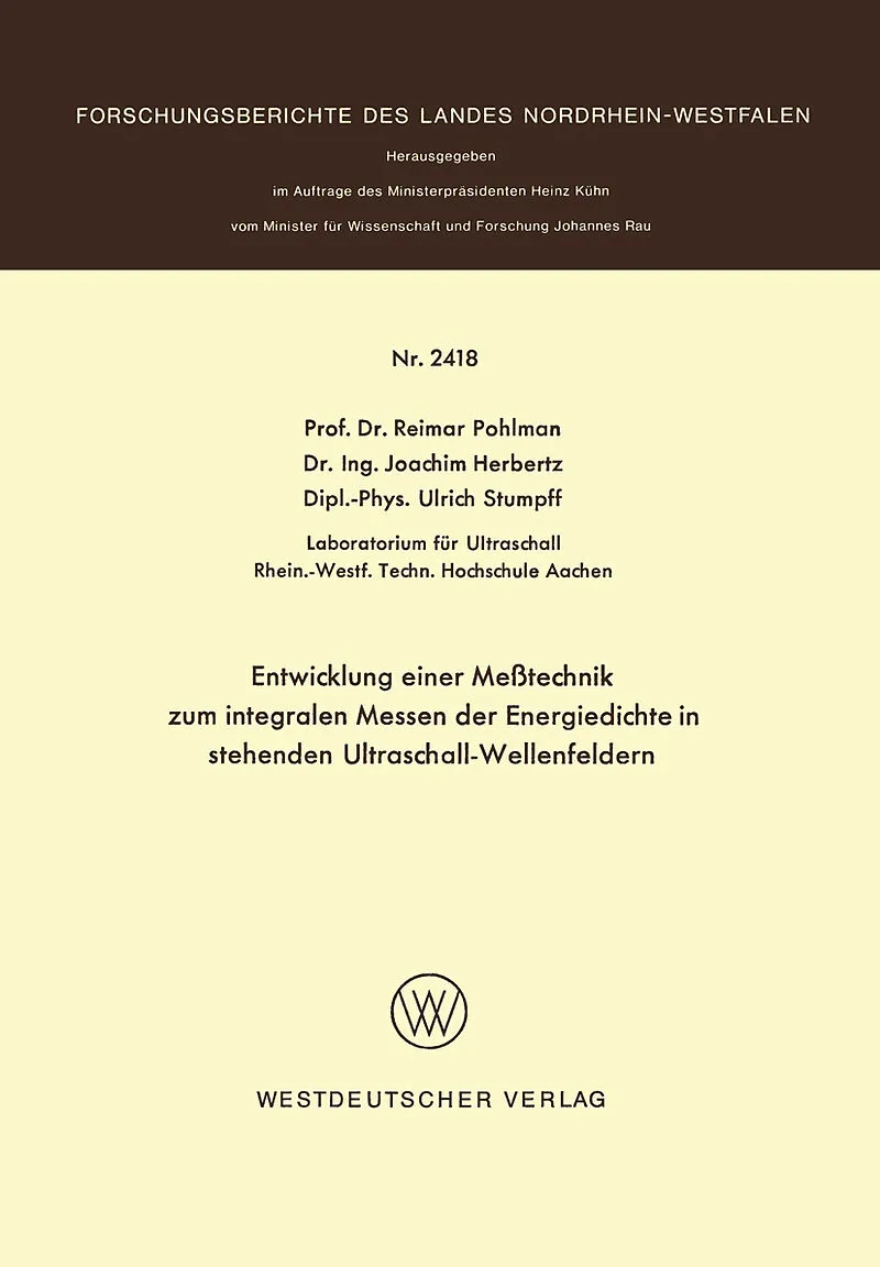 Die Erwarmung von Kunststoffen durch Ultraschallenergie im 20 kHz-Bereich hat in jUngster Zeit auf zweierlei Weise Anwen dung gefunden, bei der Verarbeitung von Kunststoffen und bei der Ausmessung von Schallfel-ern durch Integralsonden [1]. In beiden Fallen wi...
