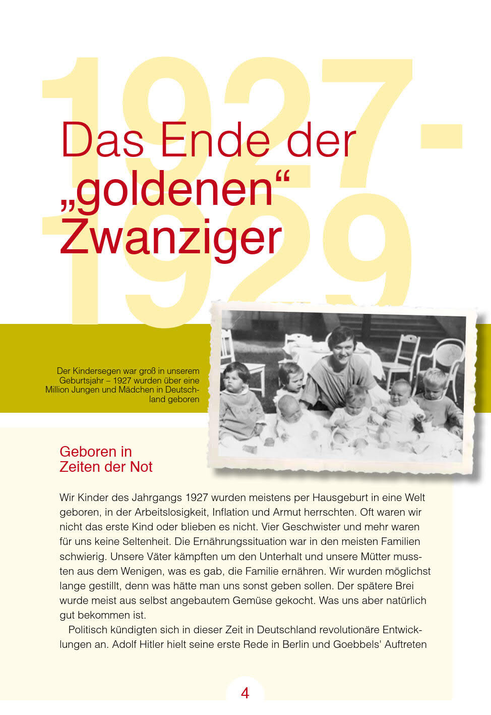 Aufgeregt und erwartungsvoll, so blickten wir damals in die Zukunft! Erinnern Sie sich mit uns an die ersten 18 Lebensjahre an Ihre Kindheit und Jugend! Jahrgang 1927 hineingeboren in die Wirren der Weimarer Republik, eingeschult im Jahr der Machtergreifung Hi...