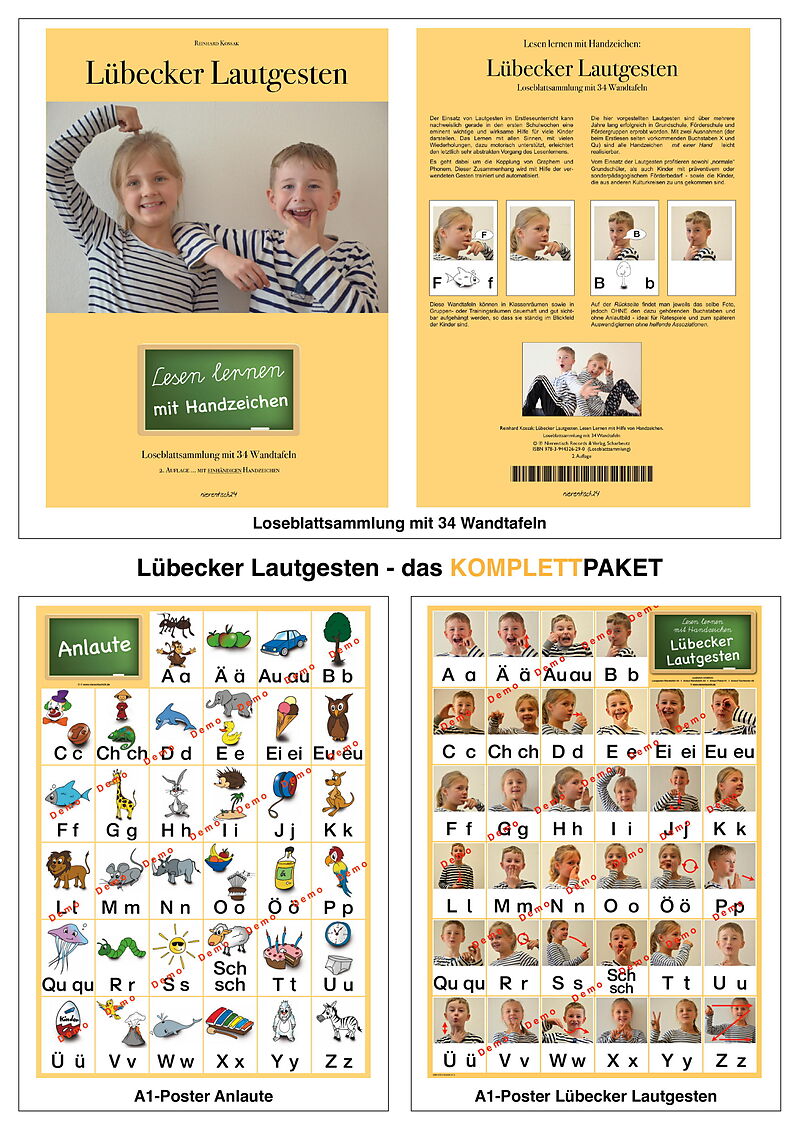34 Wandtafeln in A4 mit allen Lautgesten. Dazu ein A1-Plakat mit allen Anlautbildern (Druckschrift) sowie ein A1-Plakat mit allen Lautgesten. Der Einsatz von Lautgesten (Lautgebärden, Handzeichen, Geheimzeichen ...) im Erstleseunterricht kann nachweislich gera...