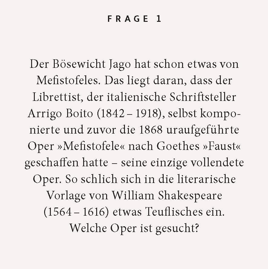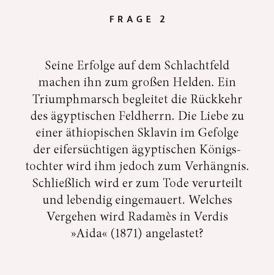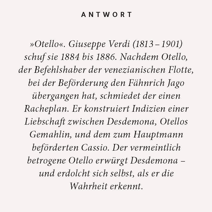 Vorhang auf für die faszinierende Welt der Oper! Ob Aida, Carmen, Tosca oder Don Giovanni, Rigoletto, Lohengrin ihre leidenschaftlichen Geschichten um Liebe, Eifersucht, Macht und Ehre weben den Stoff, aus dem die Dramen des Lebens bestehen. 100 Fragen und Ant...