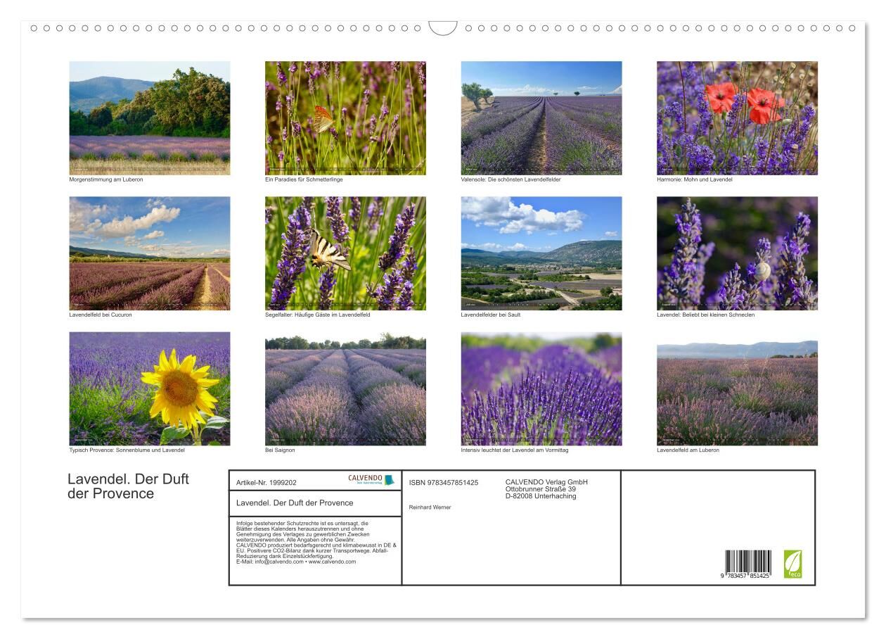 Die Landschaft der Provence ist im Sommer geprägt durch die Lavendelfelder, deren Farbe je nach Tageszeit und Lichteinfall zwischen ultramarinblau, helllila und tiefviolett changiert. Der feine Duft der Blüten erinnert uns an den Sommer im Süden. Dieser Kalend...