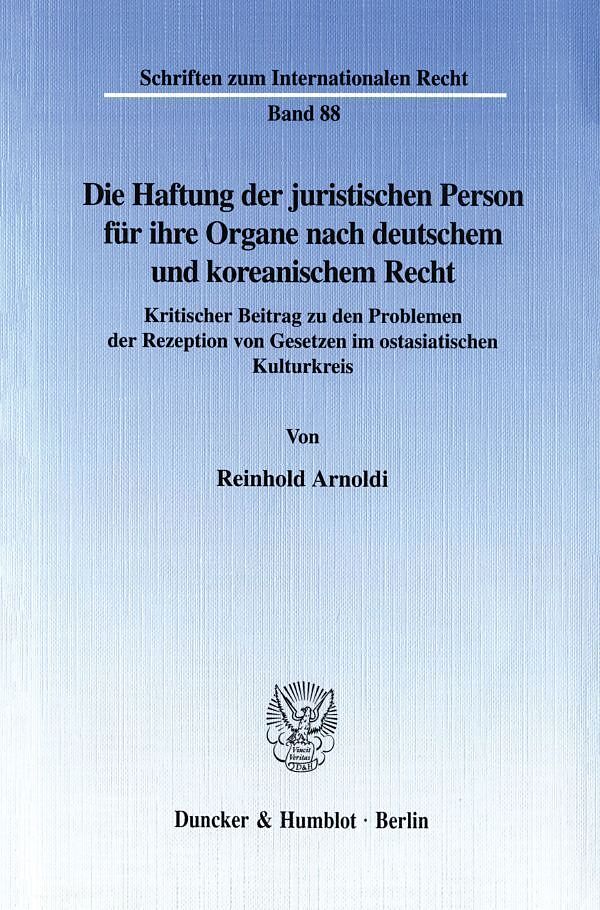 Die Haftung der juristischen Person für ihre Organe nach deutschem und koreanischem Recht.